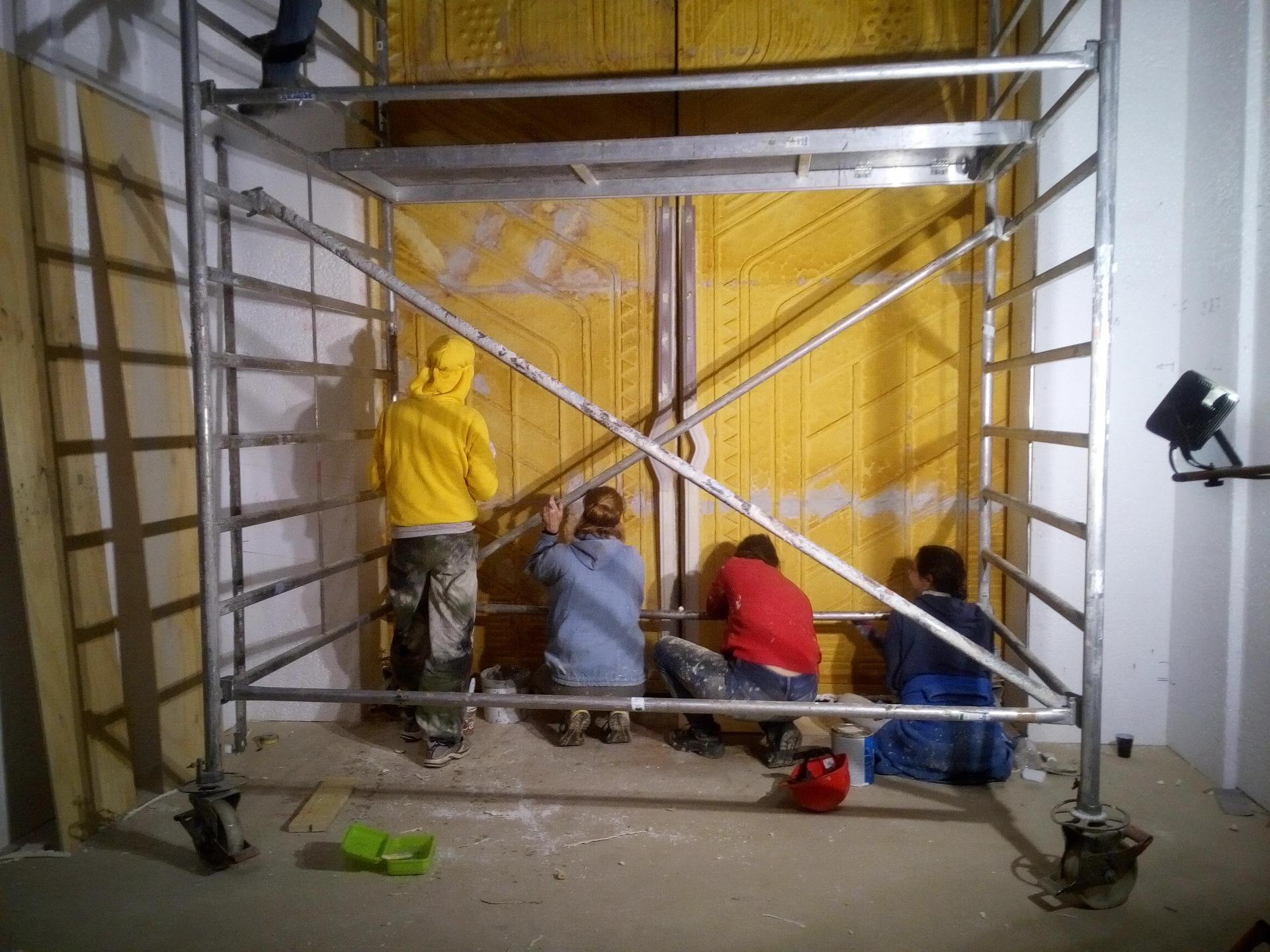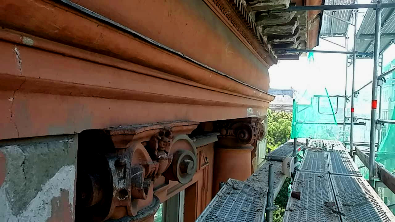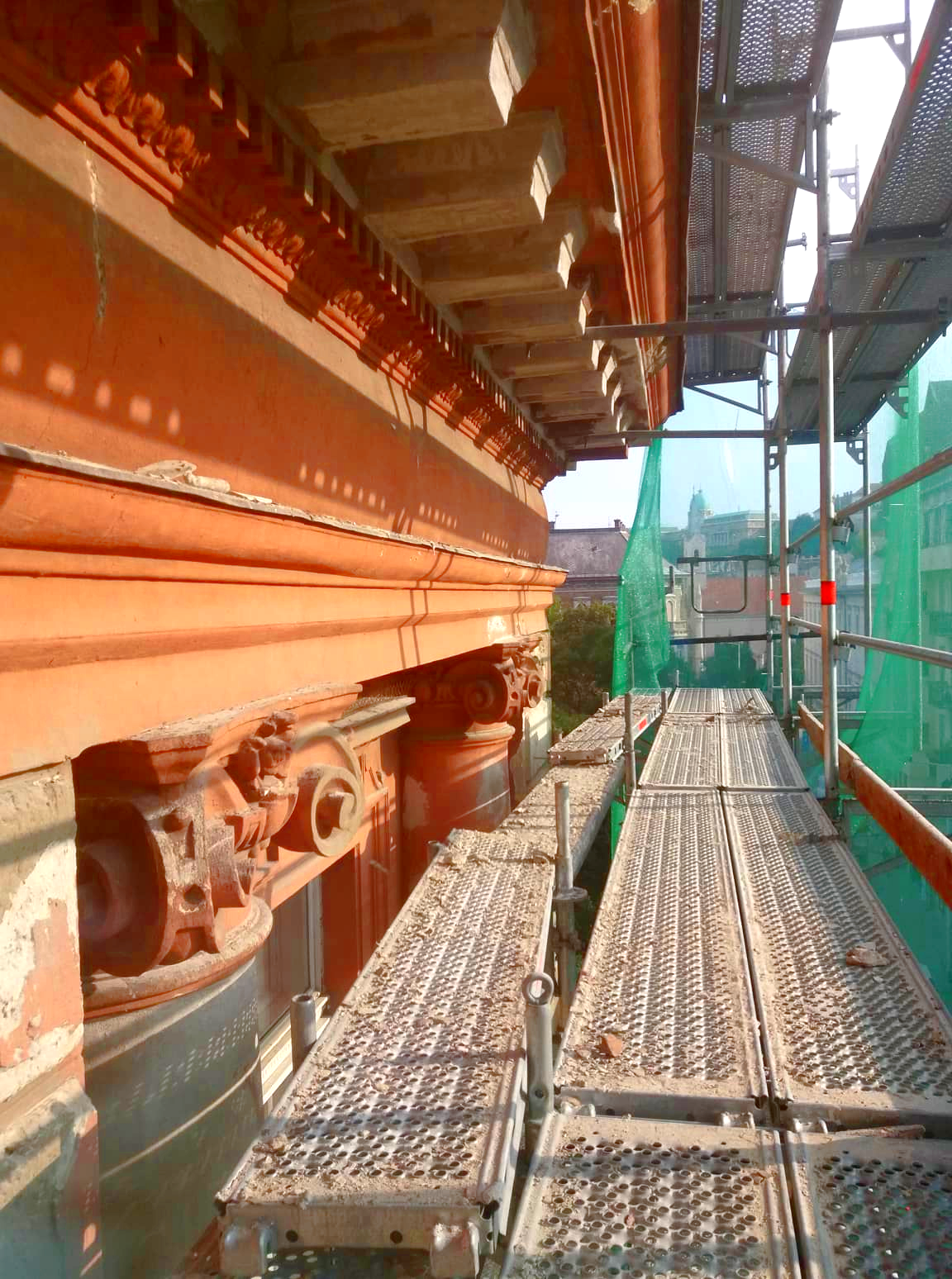 Épületrestauráció és gipszszobrászati helyreállítások a felújítás alatt
